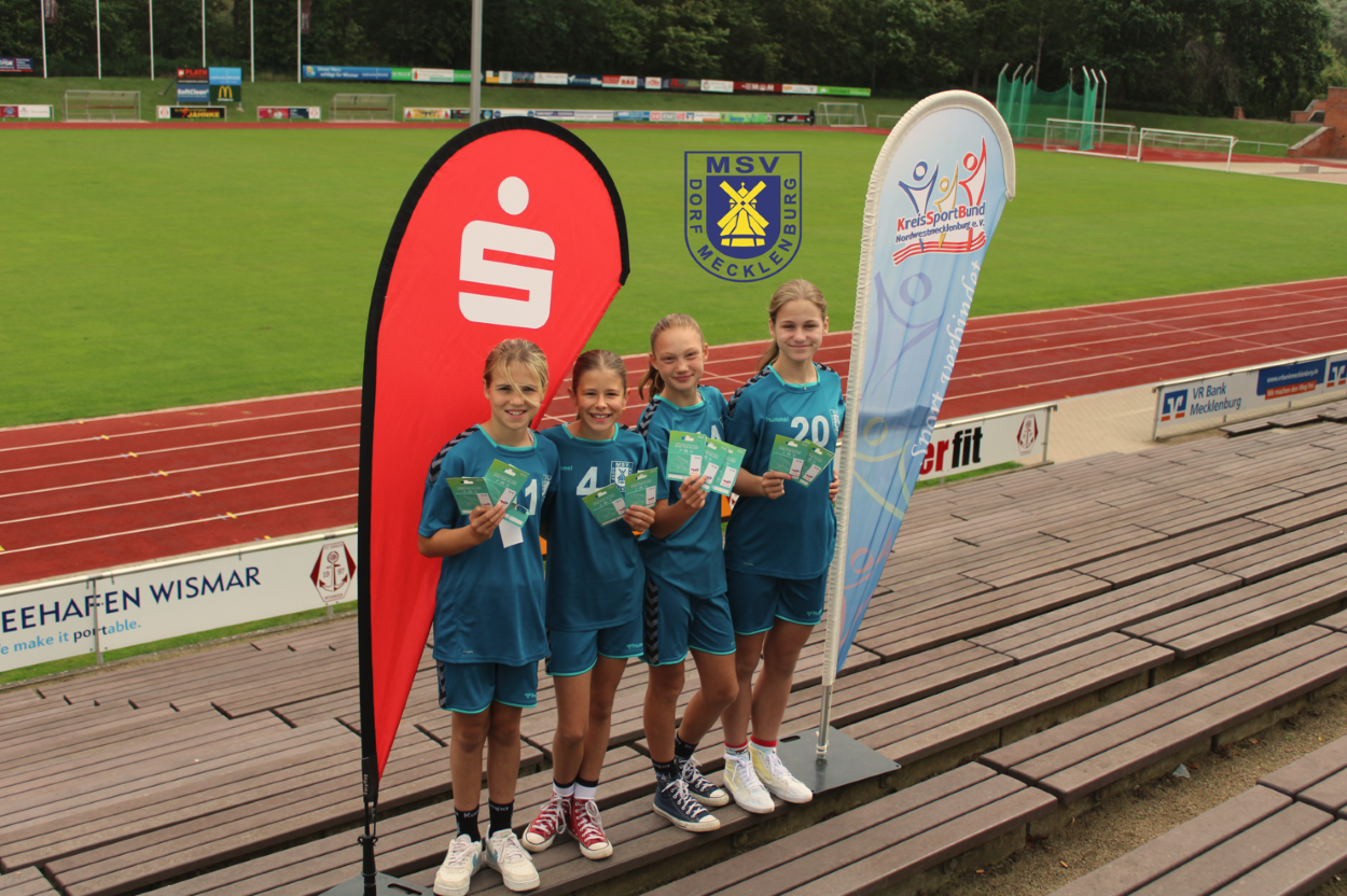 Die eingereichte Fotokollage belohnen wir mit einem Tankgutschein. „Wir freuen uns riesig und können jeden Cent gebrauchen“, so Trainerin Anett Drevs mit ihren erfolgreichen Schützlingen Lina Borowski, Nele Pucknus, Frida Helwing und Madita Kreutz (v.l.).